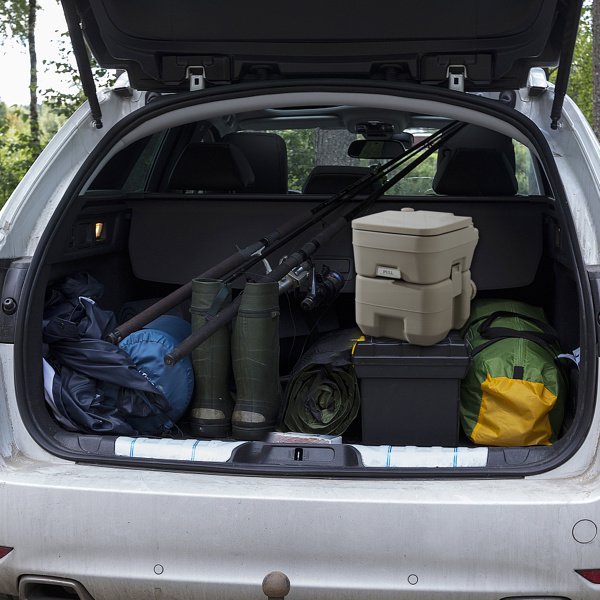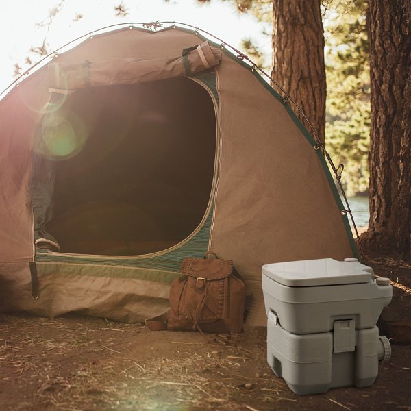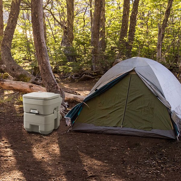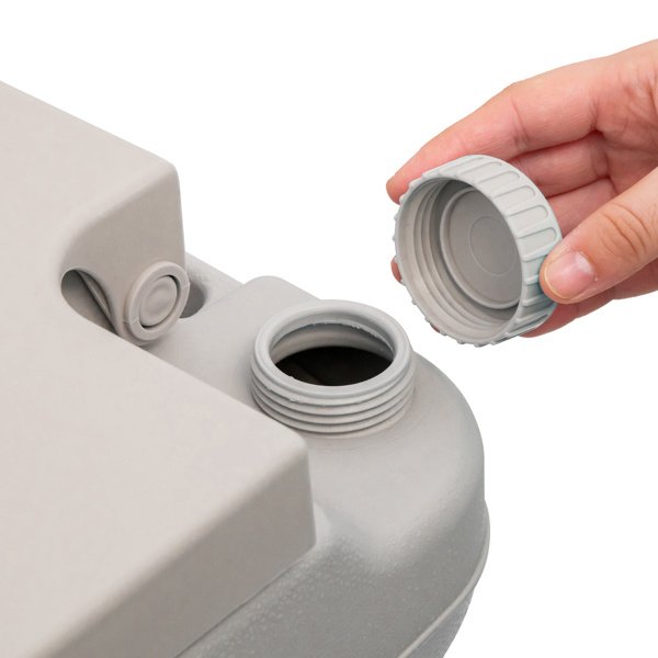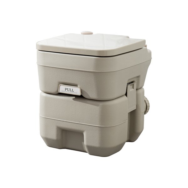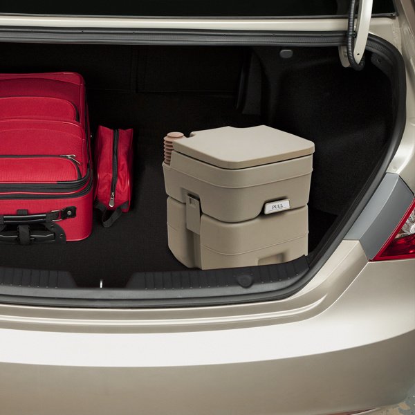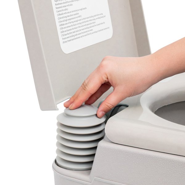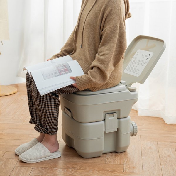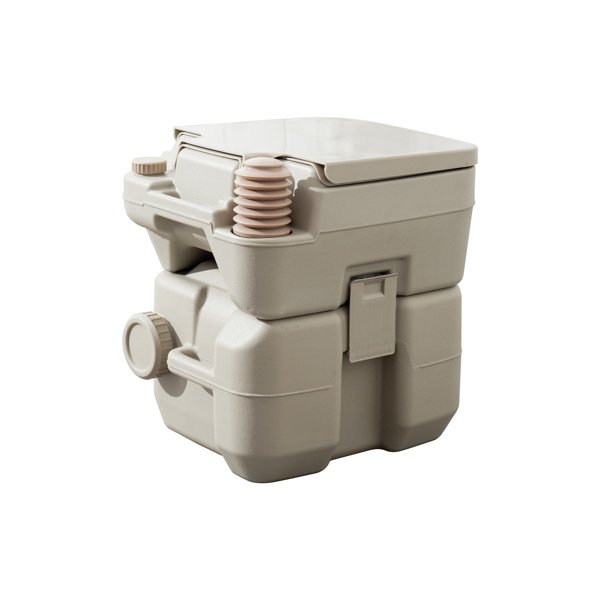5 gallon holding tank is detachable; 5 gallon flush tankHigh density polyethylene construction, lightweghit and convenient to carrySide latches secure the tank to the toiletDesign for outdoor recreational activities like camping and road tripsElderly or young children, should be under the care of healthy people and adults to usePortable toilet with 5Gallon /20L holding tank, which is of comfort, convenience and environmental protection,has an innovative product design and robust ABS quality (good dimensional stability) with shiny surface.This high-quality toilet offers powerful flushing with less pumping as well as splash-free operation and discharge.It is great for camping, outdoor recreational activities and road trips, as well as those who are elderly to move or patients.- Material: PP/ABS/PE- Dimension: 14.4'X 16.5'X16.5'- Productweight:4.9kg- Weight capacity: 200 KG- Package includes:1 x 10L capacity water tank1 x 20L capacity waste tank